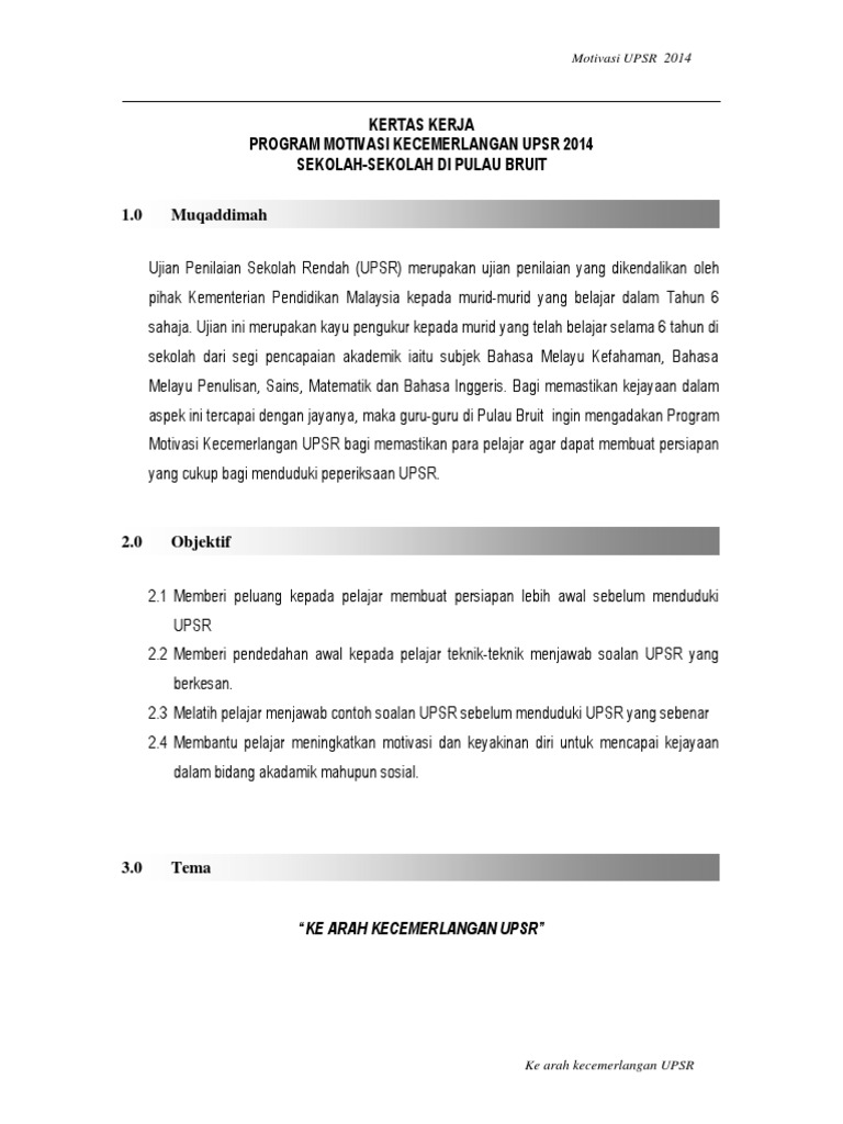 Related : Contoh Kertas Kerja Program Motivasi / Download contoh kertas kerja anda sekarang..