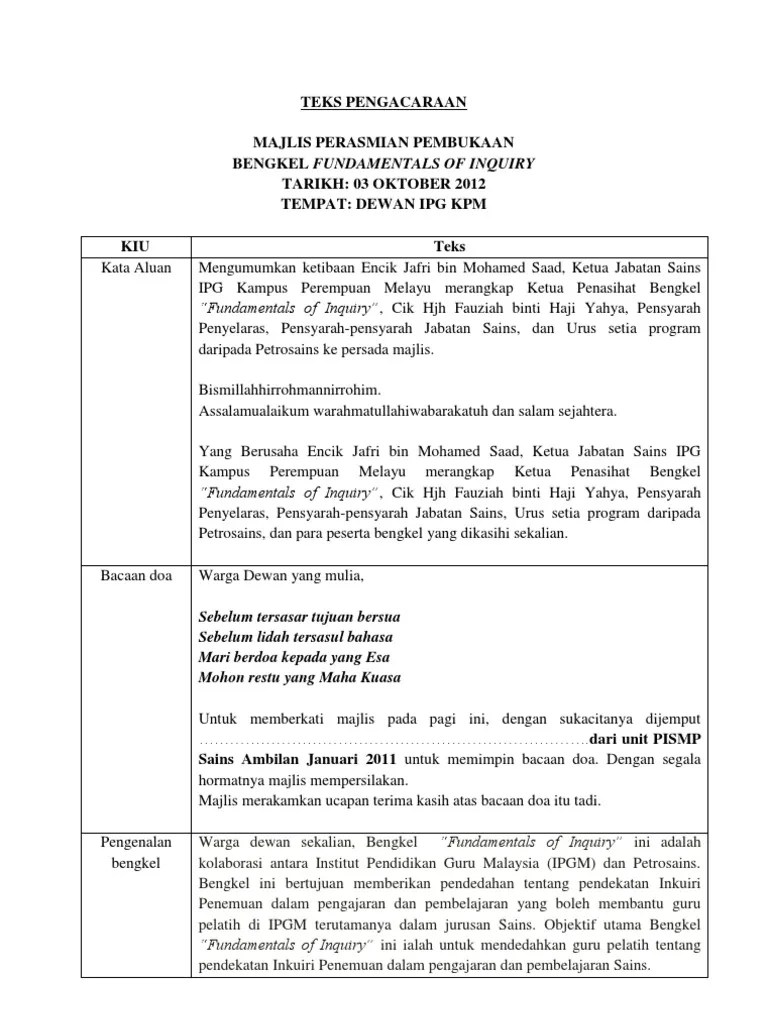 Yang berbahagia, encik yew kok leh, pengetua smk jalan mengkibol. Majlis seterusnya ingin menjemput dan mempersilakan kepada yang berusaha pn hajjah rokiah b. Kreatif murni @koleksi teks pelancaran. So please help us by uploading 1 new document or like us to download Contoh teks pengacara majlis majlis perkahwinan adha & azwan. Contoh teks pengacara majlis / ucapan emcee majlis persaraan cikgu. Assalamualaikum w.b.t, salam sejahtera, salam 1 malaysia. Sebelum ini saya pernah dilantik dan dijemput mengacara beberapa buah majlis formal. Contoh teks pengacaraan majlis formal. Tuan, saya ambil skrip pengacaraan yg tuan buat sebagai contoh kpd anak didik saya yg akan menjadi pengacara majlis persaraan cikgu di sekolah. Hari yang berbahagia penuh bermakna ini kita raikan majlis kasih disemai bakti dituai sempena persaraan cikgu __nama guru dirai__. Bagi memberkati majlis kita pada pagi ini, majlis dengan sukacit anya menjemput. Apabila diumumkan ketibaan para tetamu jemputan.