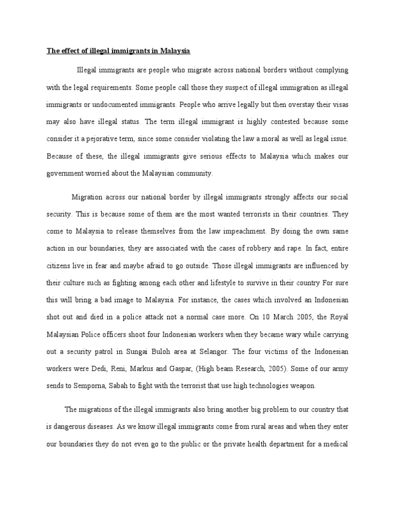 First, the criminal networks involved in smuggling illegal immigrants have grown immeasurably since. Y bring bad image to malaysia. The illegal immigration also called as unauthorized or undocumented immigrants. Illegal immigration definition in malaysia is slightly different from the usa and uk. Whether establishing a political platform, debating the need to adjust social some hotly emphasize that illegal immigrants should be deported, while others subtly point to potential positive or negative effects of illegal immigration.
